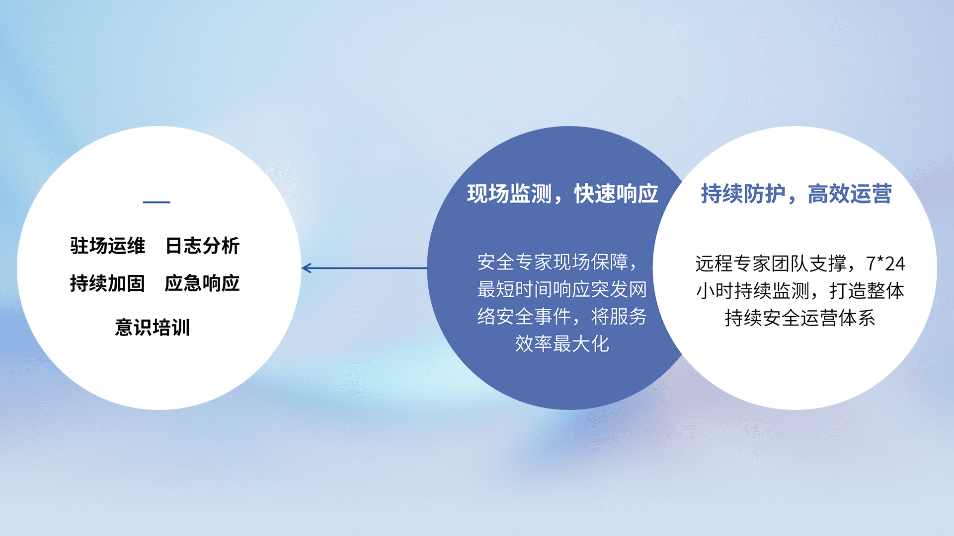 7X24小时持续监测安全事件,保持安全策略有效性,降低资产脆弱性风险,,,,精准拦截黑客攻击,,减少被黑客利用的机会,,,第一时间遏制,,,降低损失。。。